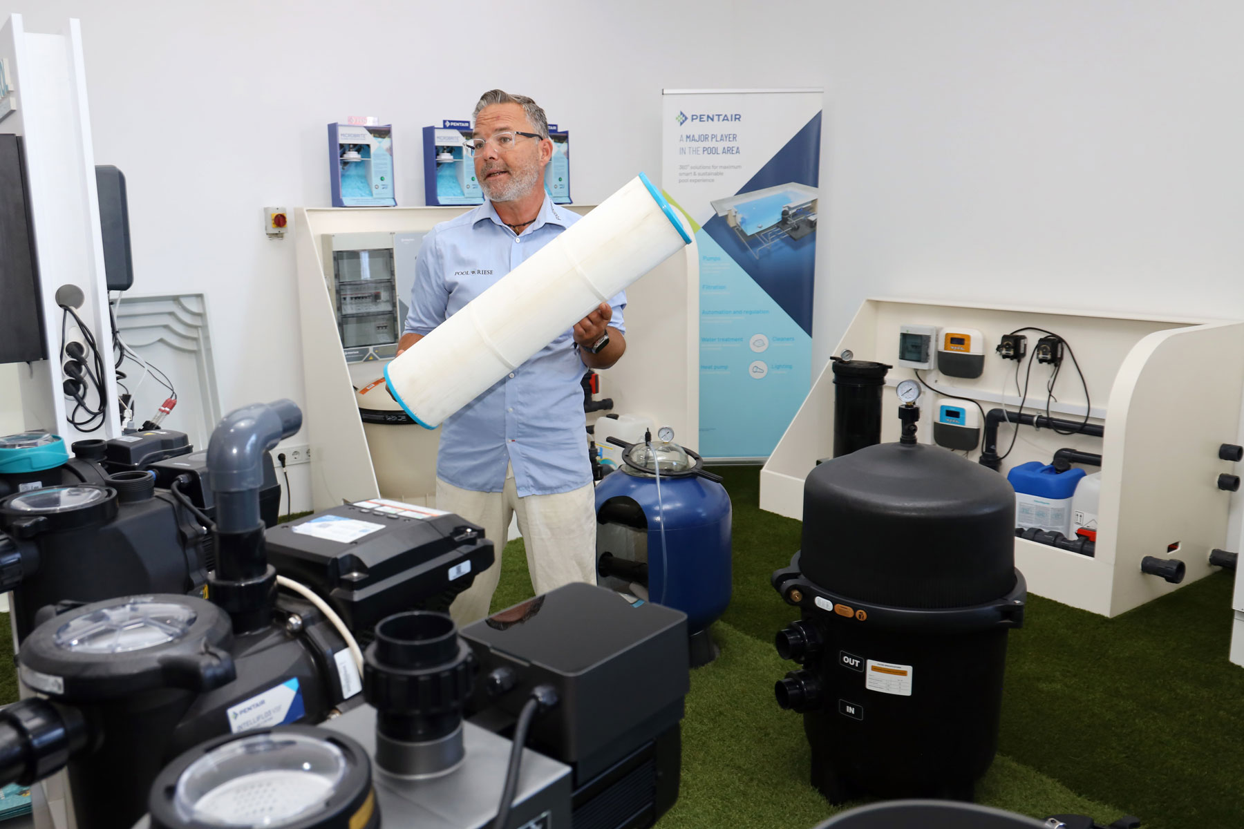 Die Pools werden übrigens direkt vom Hersteller geliefert und montiert, alle begleitenden Aufgaben wie Gartengestaltung, Rasenverlegen oder Fliesenarbeiten übernimmt die Poolriese GmbH mit zuverlässigen Partnern. Im Showroom kann die nachhaltige Technik besichtigt werden, darunter moderne Kartuschen-Filtersysteme. Diese bieten nicht nur eine bessere Wasserqualität als gebräuchliche Sandfilter, sondern benötigen zudem keine Rückspülung. Das kann pro Jahr durchaus eine komplette Poolfüllung an Abwasser sparen. Bei drei bis vier Jahren Lebensdauer benötigt eine Kartusche eine jährliche Reinigung von etwa 15 Minuten.