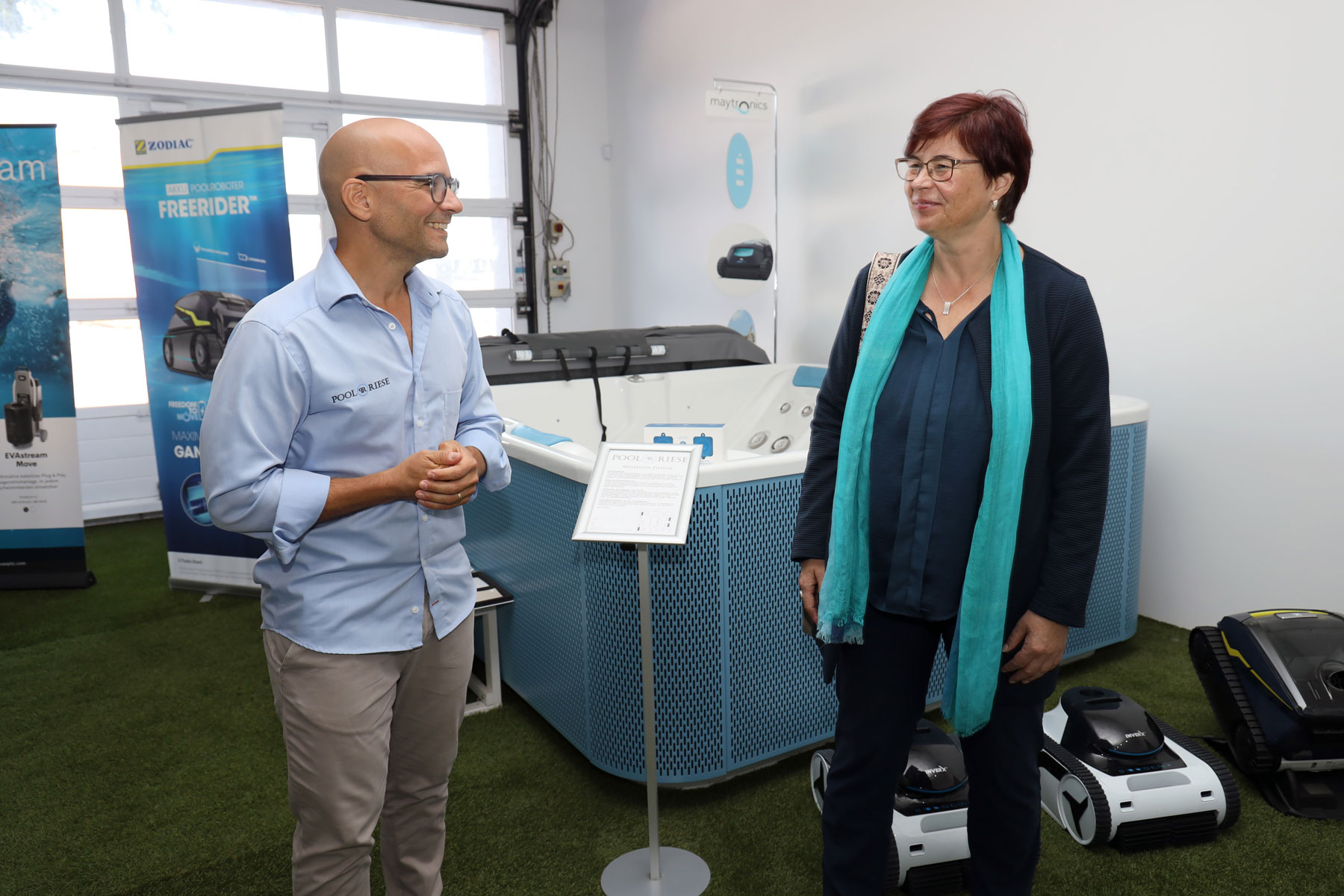 Die Entkernung und Sanierung des Objekts erfolgte im vergangenen Jahr, 600 Quadratmeter Büro- und Hallenfläche bieten gute Voraussetzungen. Der Büro- und Empfangsbereich wurde hochwertig ausgestattet, so dass sowohl Kunden als auch Beschäftigte sich wohlfühlen können. Erst in diesem Jahr wurde der großzügige Außenbereich mit einer Auswahl der eigenen Produkte gestaltet. Hier wird gezeigt, was im Poolbereich alles möglich ist.