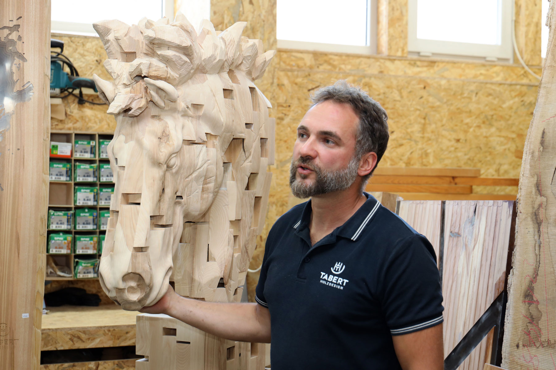 Seit Juli 2023 findet man Tabert Holzdesign im Niedergörsdorfer Ortsteil Rohrbeck. In der großen Halle mit vorgelagertem Holzplatz kann er frei arbeiten. Dieser Drang nach Freiheit war es auch, der ihn dazu bewog, seine angestellte Tätigkeit als Meister und Ausbilder bei SIK-Holz aufzugeben und sich selbstständig zu machen. Bereut hat Bastian Tabert das bis heute nicht, er sieht sich als „Forscher, Abenteurer und Entdecker“.